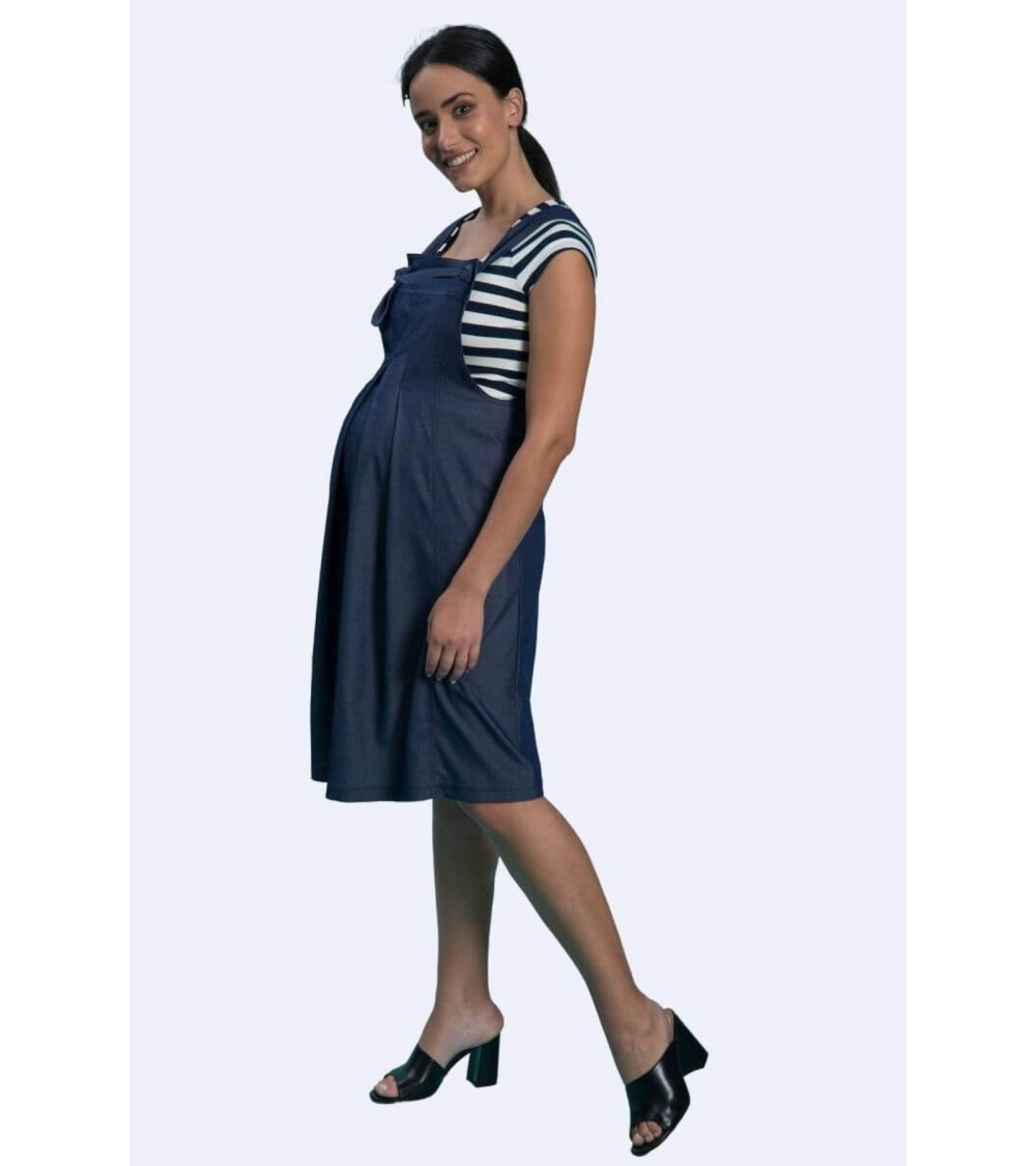 Φόρεμα με πιέτες,τύπου jean με εύκολο λύσιμο τιράντας που σας βοηθάει στο θηλασμό.