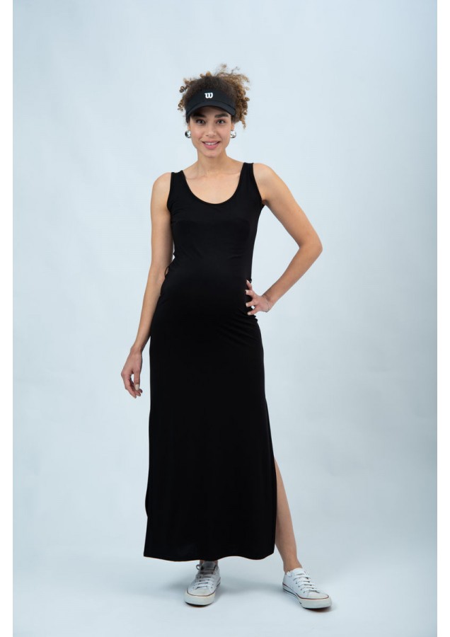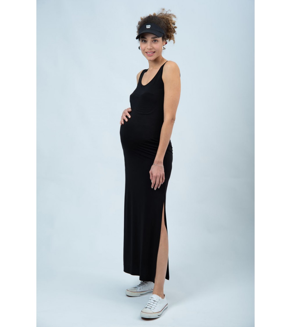 Φόρεμα εγκυμοσύνης μακρύ με σκίσιμο στο πλάι από ελαστικό ύφασμα φυσικής βισκόζης.